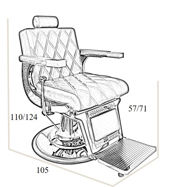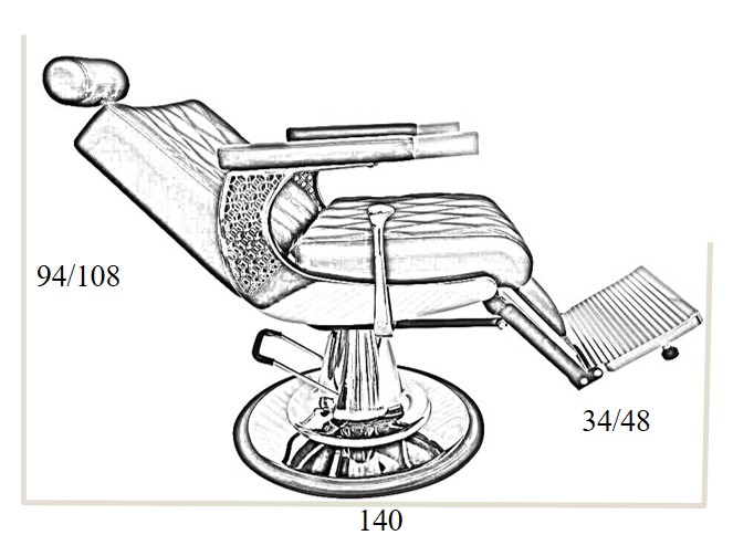 Sillón de caballero, bomba hidráulica con freno, base disco dorada, estructura de aluminio y acero color dorado. Respaldo y apoyapiés reclinable. Tapizado color negro.